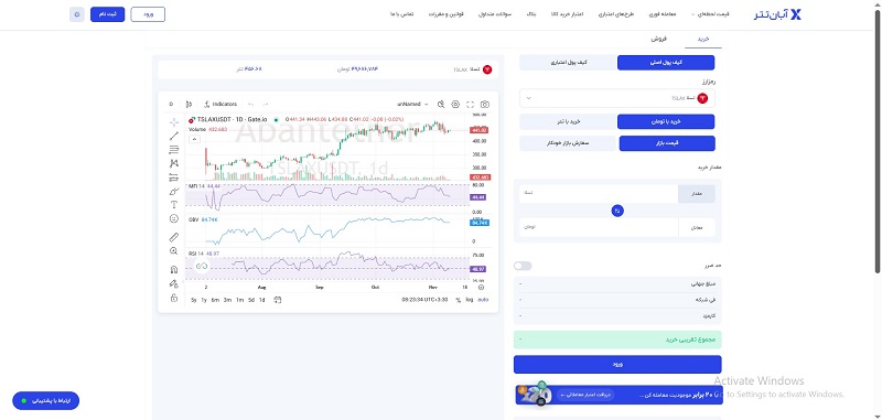 همچنین برای دسترسی به لیست سهام قابل معامله در آبان تتر میتوانید از طریق لینک زیر وارد صفحه اختصاصی مربوط به سهام شرکتهای خارجی موجود در آبان تتر شوید و با انتخاب سهم مورد نظر وارد صفحه معاملات شوید.