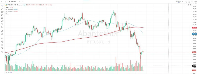 در حال حاضر قیمت زیر هر دو میانگین قرار دارد و خط MA200 مثل یک مقاومت سنگین بالای سر قیمت عمل میکند. هرچند در چند کندل اخیر یک برگشت کوچک و تلاش برای تثبیت در محدوده 87 هزار دلار دیده میشود، اما تا زمانی که قیمت نتواند دوباره بالای MA50 و سپس MA200 تثبیت شود، ساختار بازار همچنان نزولی محسوب میشود. به بیان سادهتر، فعلا بازار در فاز بازیابی ضعیف پس از ریزش است، نه شروع یک روند صعودی جدید. بنابراین، فشار فروش هنوز غالب است و تقاطع مرگ همچنان معتبر و فعال تلقی میشود.