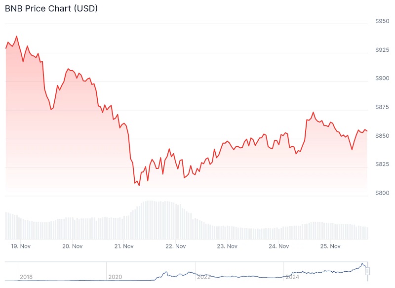 با نزدیک شدن به پایان ماه نوامبر ۲۰۲۵، فعالان بازار در حال رصد این هستند که آیا سطح حمایتی BNB حفظ خواهد شد یا خیر.