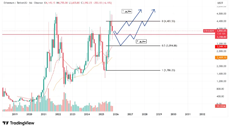 تحلیل تکنیکال اتریوم در ماه مهر ۱۴۰۴ (سپتامبر – اکتبر ۲۰۲۵)
