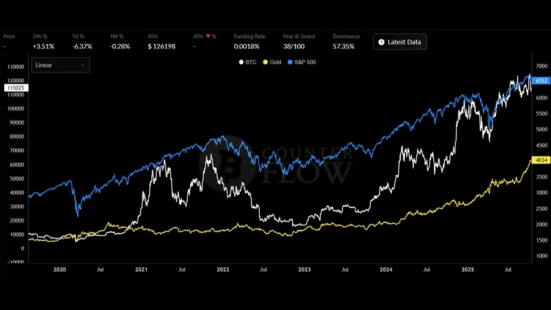 ورود بیتکوین و آلتکوینها به عرصه مالی، تقابل جالبی را میان «جهان فیزیکی طلا»، «اقتدار پول فیات» و «نوآوری دیجیتال غیرمتمرکز» رقم زده است. در حالی که طلا بر پایه کمیابی طبیعی و تاریخ هزار ساله خود استوار است، دلار از پشتوانه اعتماد سیاسی و اقتصادی ایالات متحده بهره میبرد. رمزارزها اما به جای تکیه بر دولتها، بر شفافیت امنیت بلاکچین استوار هستند. همین تفاوت بنیادی باعث شده هر سه، در مواجهه با تحولات اقتصاد جهانی، واکنشهای متفاوت اما به هم پیوستهای را از خود نشان دهند؛ به عنوان مثال، بررسی دادههای جدید وبسایت bitcoincounterflow نشان میدهد که همبستگی میان بیتکوین، طلا و شاخص دلار در سال ۲۰۲۵ نوسانات قابلتوجهی را تجربه کرده است. از همین رو، پیشبینی روند کریپتو و طلا به یک موضوع پر اهمیت برای سرمایهگذاران تبدیل شده است.