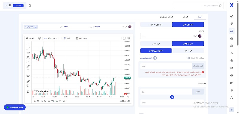 سپس با انتخاب ارز دیجیتال مورد نظر و سپس کلیک بر روی گزینه خرید و فروش وارد صفحهای مانند تصویر زیر میشوید.