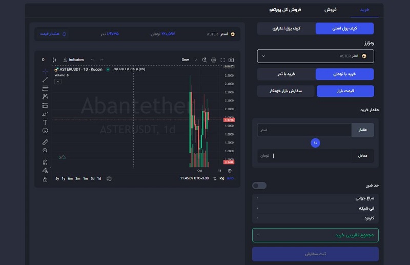 شما میتوانید ارز ASTERرا به راحتی از صرافی آبان تتر خریداری کنید. مراحل آن به صورت زیر است: