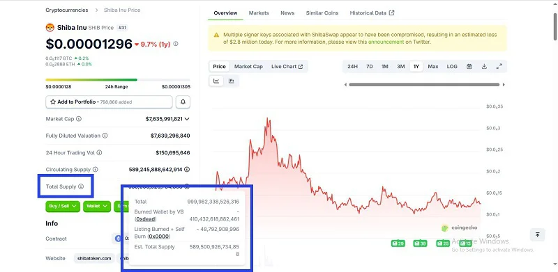 در تصویر بالا جزئیات عرضه کل و تعداد توکن‌های سوخته شده را مشاهده می‌کنید.