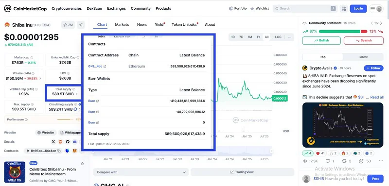 وب سایت CoinMarketCap یکی از شناخته‌شده‌ترین مراجع بازار ارزهای دیجیتال است. در صفحه اختصاصی هر ارز، بخشی با عنوان Tokenomics وجود دارد که اطلاعاتی مثل عرضه کل (Total Supply)، عرضه در گردش (Circulating Supply) و تغییرات مربوط به آن‌ها نمایش داده می‌شود. اگر پروژه‌ای فرایند توکن‌سوزی انجام داده باشد، کاهش عرضه در همین بخش قابل مشاهده است. علاوه بر این، در قسمت Announcements یا بخش خبری CoinMarketCap هم می‌توان اطلاعیه‌های رسمی مربوط به توکن‌سوزی را دنبال کرد. در عمل، این سایت یک دید سریع و عمومی به وضعیت عرضه توکن‌ها می‌دهد.
